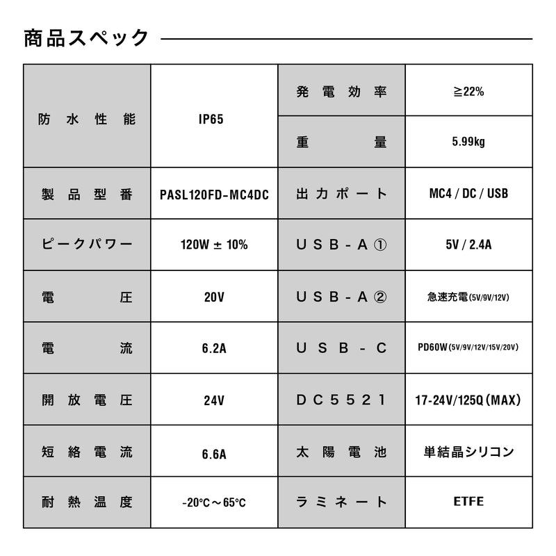 ソーラーパネル 120W